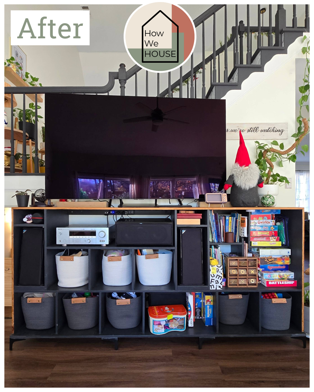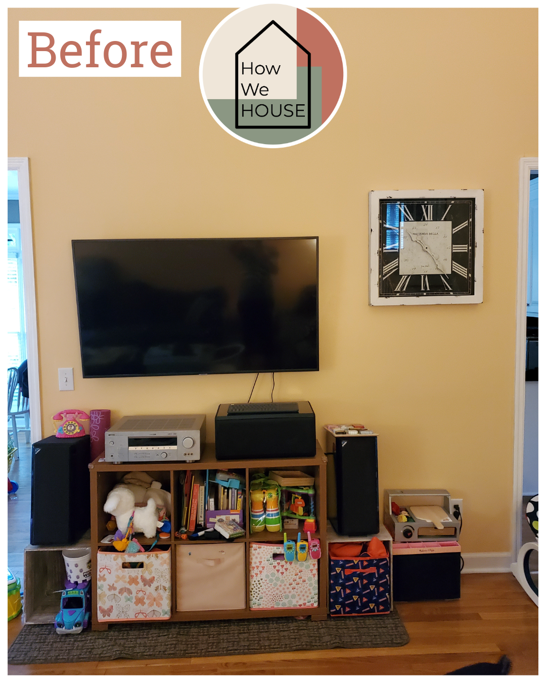 At first, we had a six-cube shelf holding the receiver, with two extra cubes on the sides for the speakers. It worked… until our daughter started riding her tricycle around the living room. Let’s just say it didn’t feel very safe! So, we decided to build a custom cabinet to keep everything organized and sturdy.